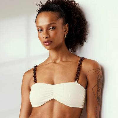 TOP BIQUÍNI TOMARA QUE CAIA CANELADO COM ALÇAS EM CORRENTE